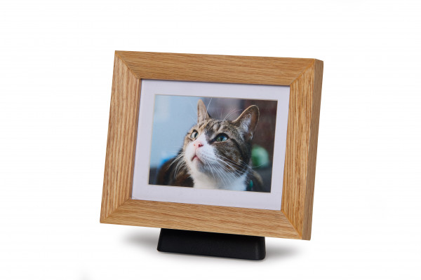 The Frame can be located in a variety of positions at or above the level of the Pod base in either portrait or landscape mode. Once the locating pin is aligned to the grid at your preferred position, simply allow the magnetic face of the Pod to attach firmly to the Frame back. The Pod’s magnetic force is sufficient to securely support a large Frame.  The Pod is available in three sizes, suitable for photos of 6x4, 7x5 or 8x10.